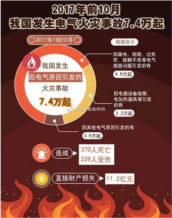 據(jù)公安部消防局統(tǒng)計(jì)顯示,2011-2016年:電氣火災(zāi)52.4萬(wàn)起;造成3261人死亡;兩千余人受傷;經(jīng)濟(jì)損失達(dá)92億余元;每年觸電身亡約每小時(shí)1人。