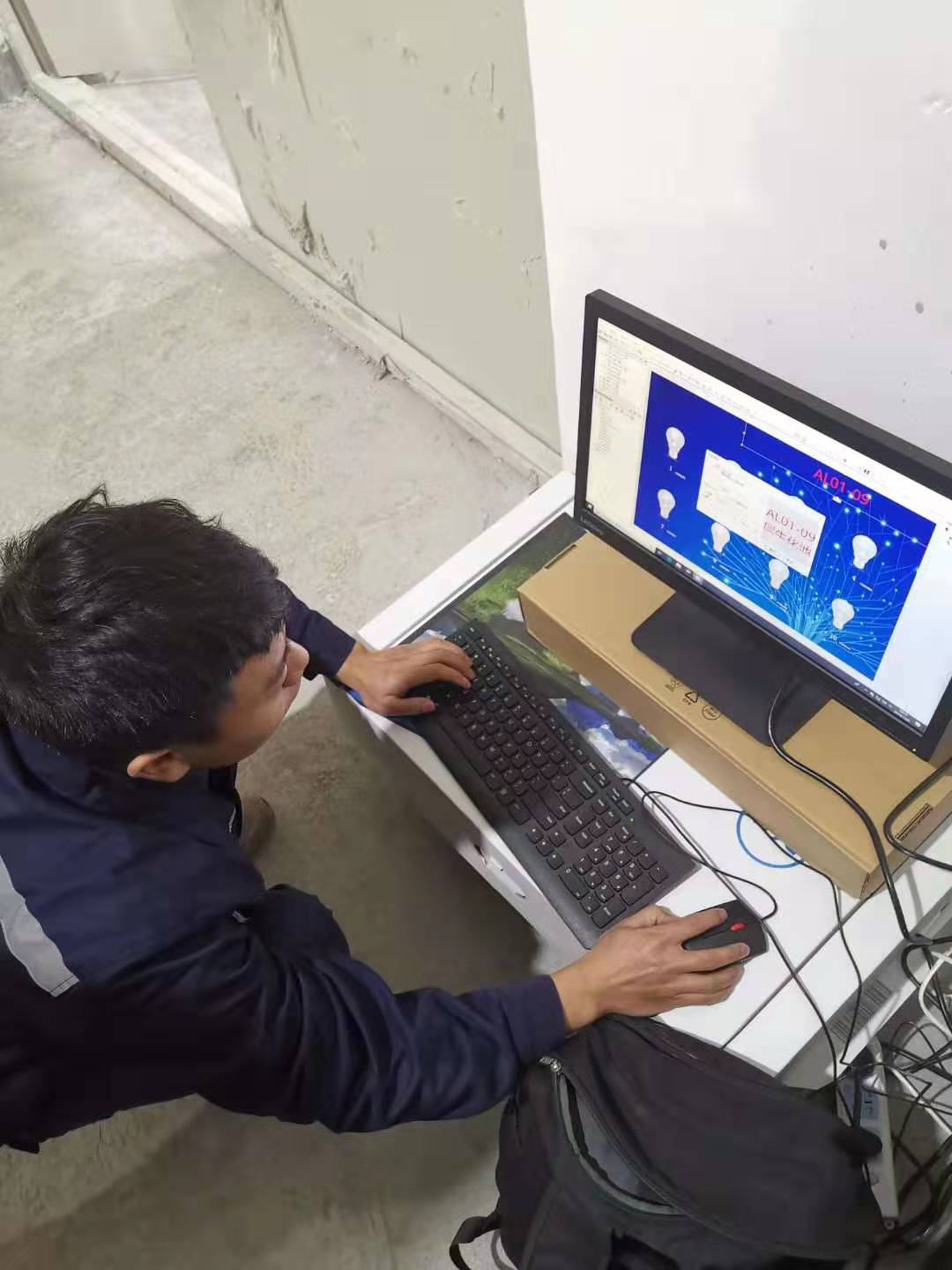 VSU智能照明控制系統(tǒng)可實現(xiàn)對區(qū)域內(nèi)所有燈具開閉,調(diào)光調(diào)色,定時控制,空調(diào)高中低三檔、電動門、電動窗簾開閉,可帶人感、光感,實現(xiàn)全自動化??刂品绞娇蛇x擇手機、電腦、觸摸屏、面板。根據(jù)客戶需求,VSU為安康江南再生水廠該項目設(shè)計的控制方式為電腦+觸摸屏。下圖為現(xiàn)場測試情況: