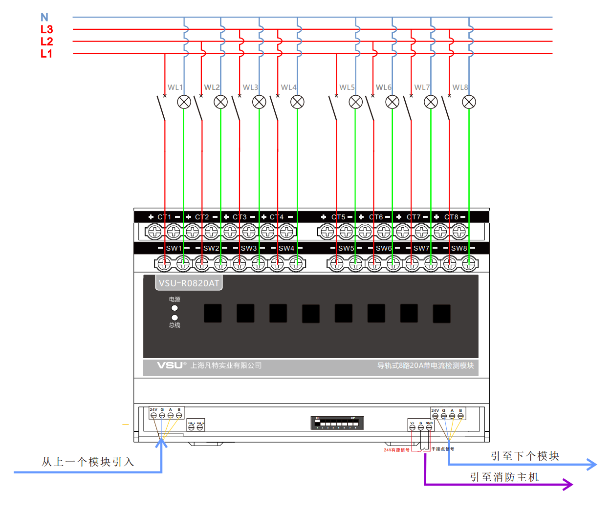 | 本產(chǎn)品為導(dǎo)軌式安裝,電流檢測為穿心式接線,含8路智能繼電器,每回路可獨(dú)立控4400W燈具的開關(guān),帶強(qiáng)切功能與互鎖功能;檢測每回路實(shí)際用電電流,通過實(shí)時(shí)電流與平時(shí)電流對比,精確排查回路燈具的損壞。 |