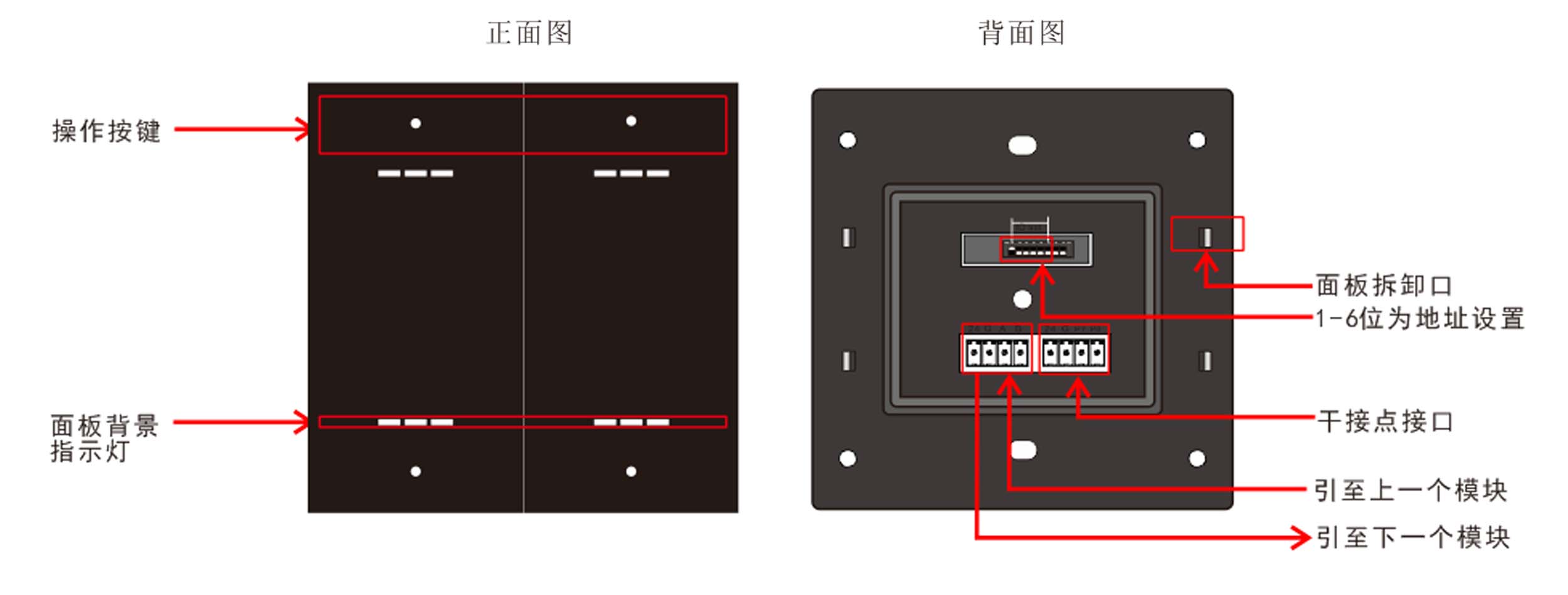 | 標準86底盒安裝,支持無縫聯(lián)接,提供4鍵,每個按鍵帶1路LED指示燈,復(fù)位式輕觸開關(guān),結(jié)構(gòu)成熟,性能穩(wěn)定,標準工藝,采用塑料材質(zhì)(顏色可選灰色、黑色和香檳金);自帶感應(yīng)式背光燈;提供兩路IO輸入可外接傳感器。 |