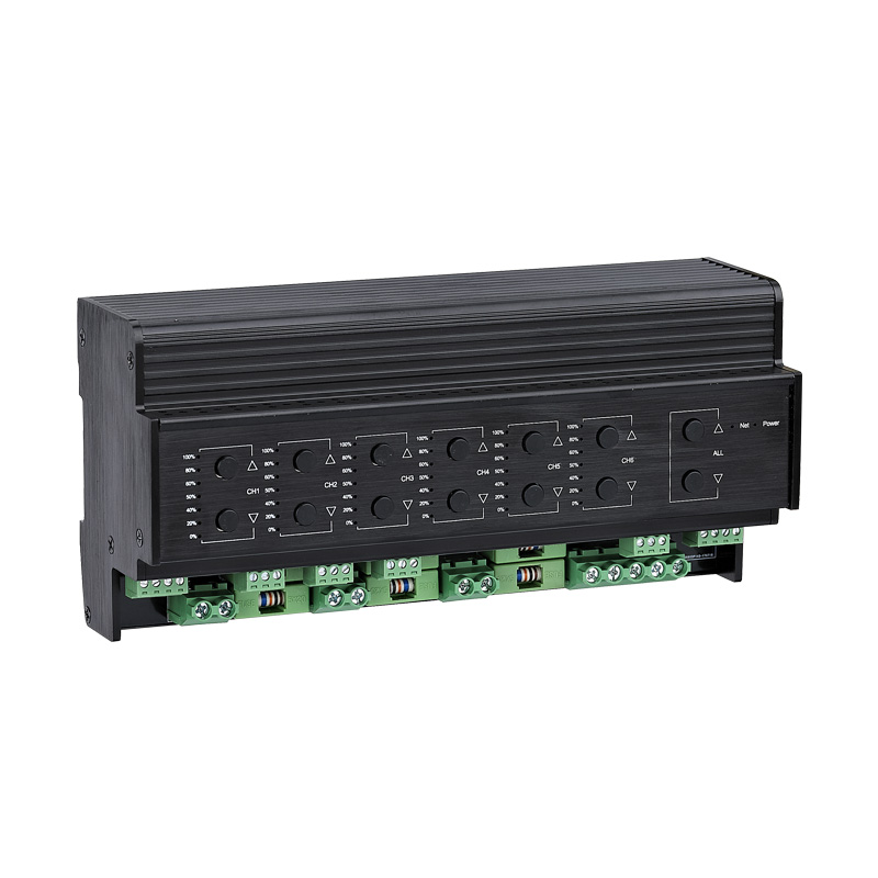 本產(chǎn)品為掛壁式安裝,可控制6路10A(2200W)的射燈、筒燈和白熾燈等的電壓調(diào)光,輸出調(diào)光類型為前沿?cái)夭ㄕ{(diào)光;機(jī)箱采用輕巧型設(shè)計(jì)美觀大方。帶斷路器保護(hù). |